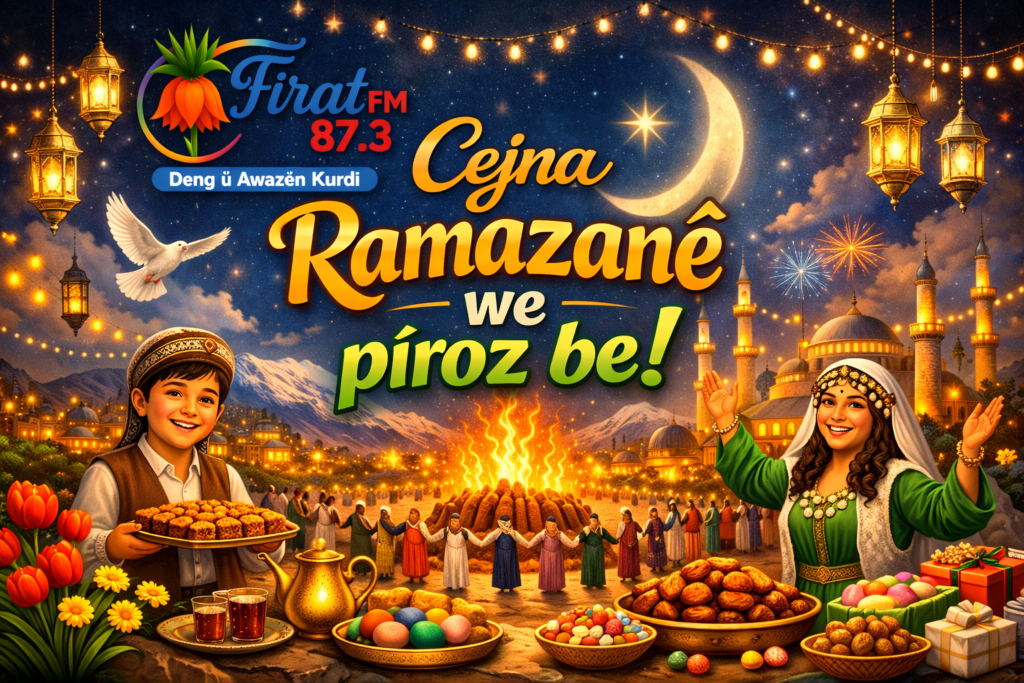 Piştî roja xweş û rûmetê Ramazanê, em bi dilê pak û hevîya xweş Cejna Ramazanê pîroz dikin. Fırat FM 87.3 bi stran, mesaj û dengên xwe, ev bayram bi we re şên dike. Bi xweşî, bi hevî, bi biratiyê — Cejna Ramazanê we pîroz be! Ramazan’ın ardından gelen bu bayram; paylaşmanın, sevginin ve temiz kalplerin […]
